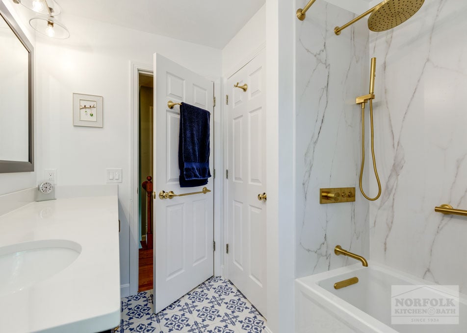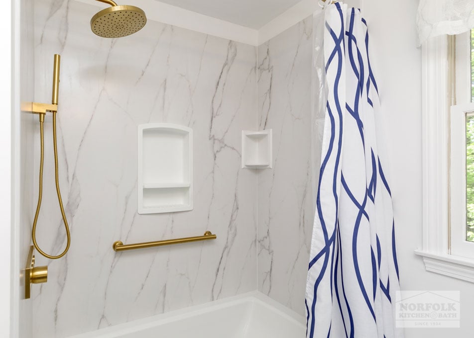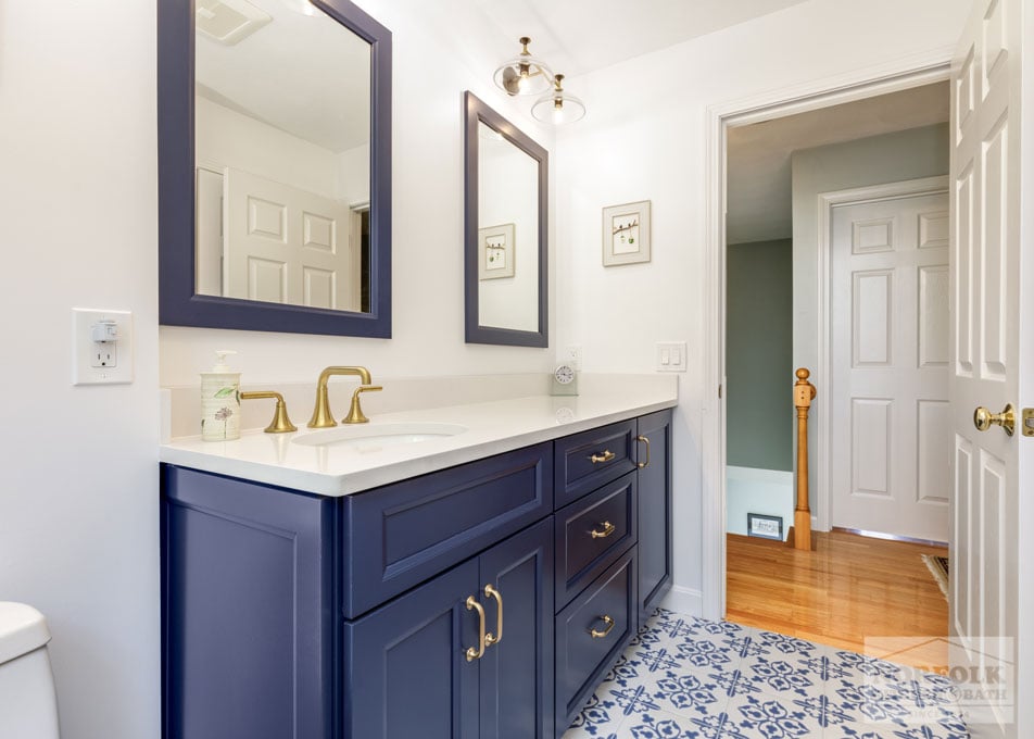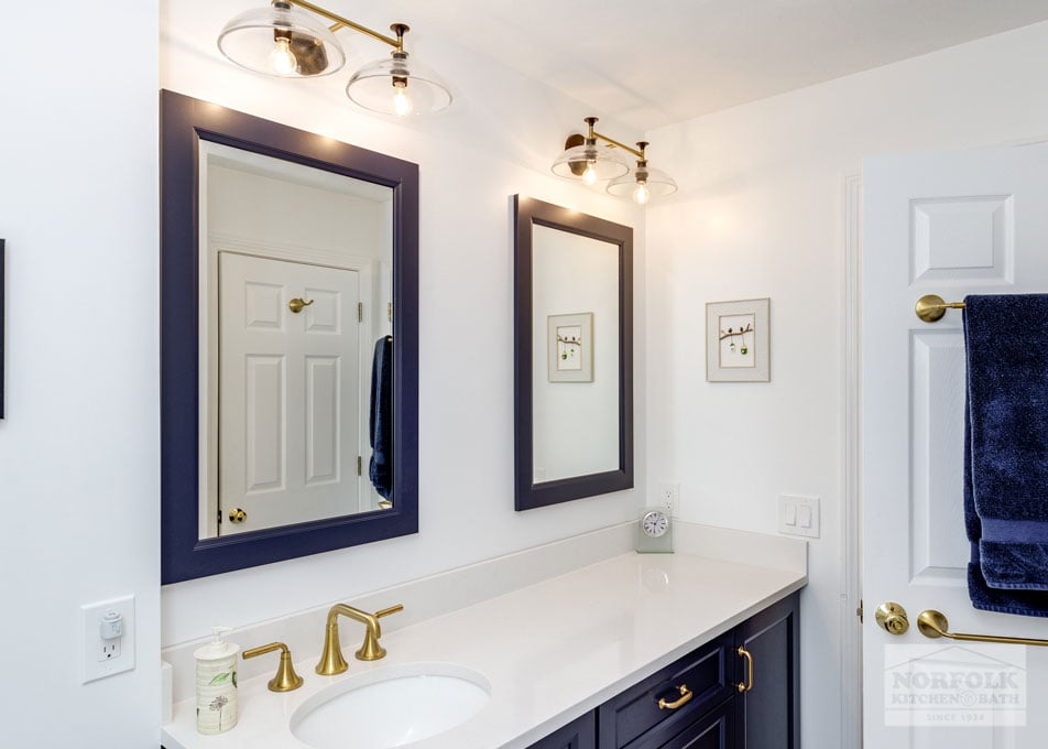 White & Navy Bath Remodel – Maynard, MA